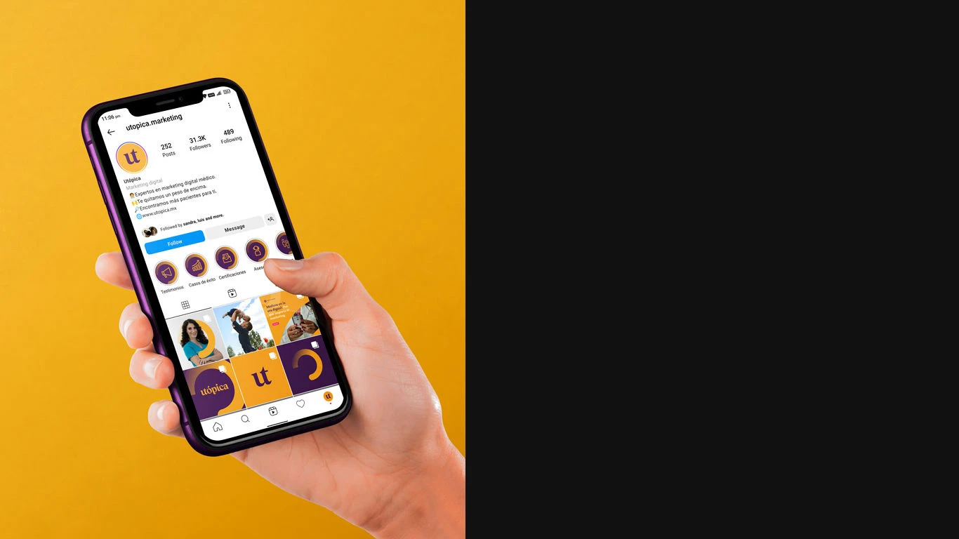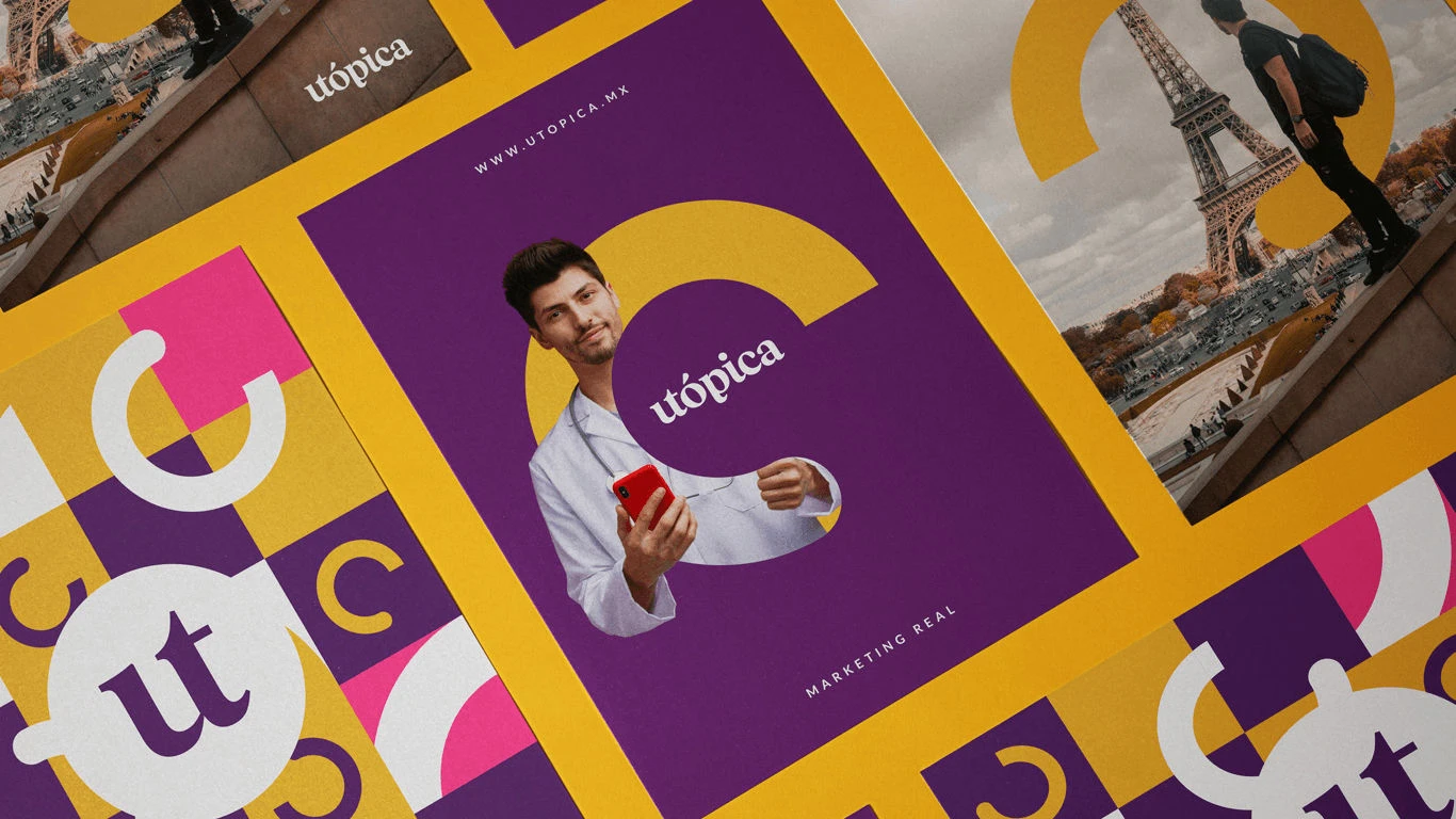 Abordamos el rebranding analizando la marca, sus competidores y las tendencias del sector. Adoptamos la narrativa “Te quitamos un peso de encima”, que inspiró el nuevo nombre: “Utópica”. Este nombre refleja nuestro compromiso con la honestidad y el cumplimiento de promesas, permitiendo que las personas alcancen su propia utopía. En cuanto al diseño visual, evitamos los clichés médicos y creamos un logo tipográfico personalizado, donde una ligadura entre las letras ‘u’ y ‘t’ simboliza colaboración y progreso. Utilizamos un ícono de carga para representar la realización de sueños. La paleta de colores refleja la experiencia de la marca y su trayectoria, transmitiendo un espíritu cálido, moderno y divertido.